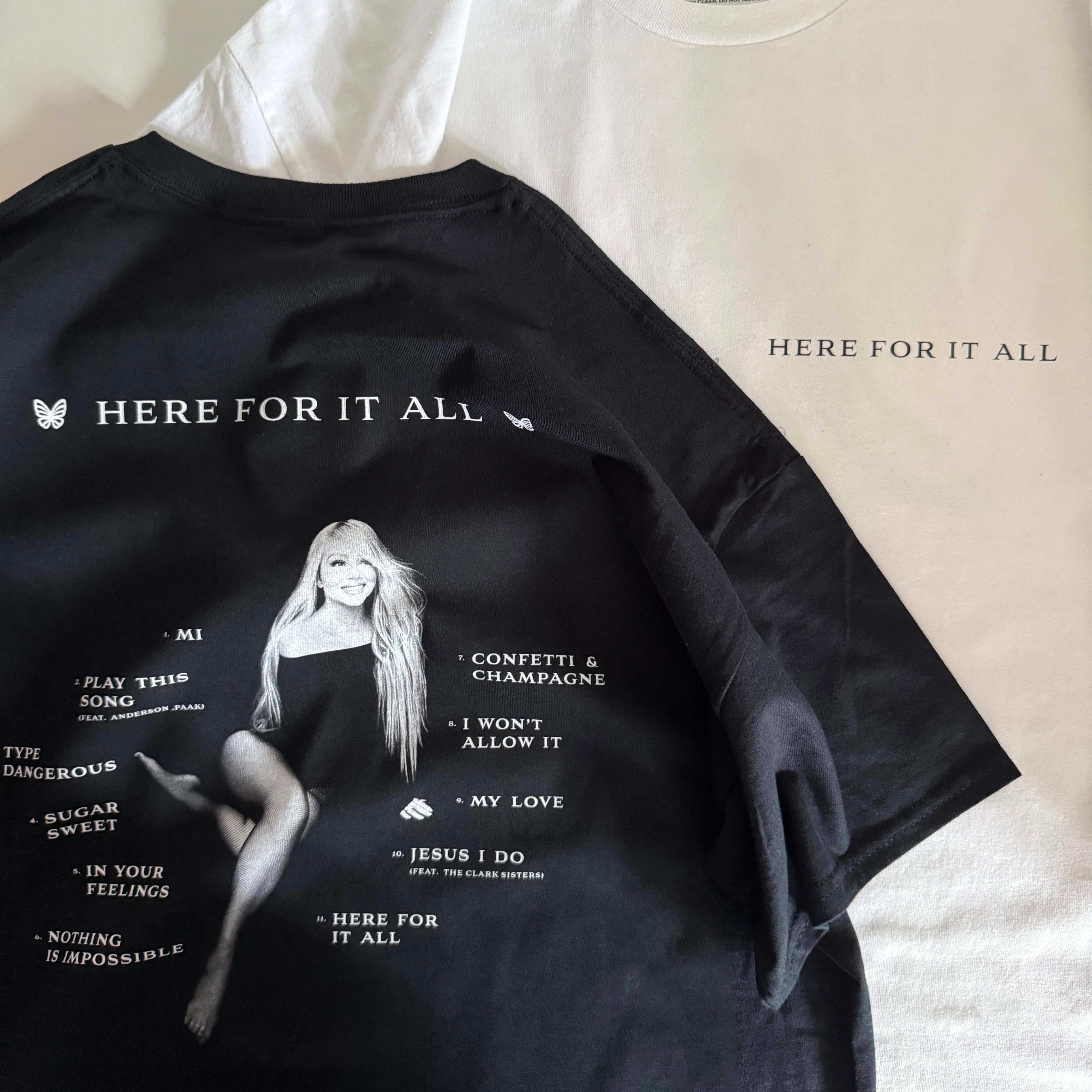 2018年の "Caution" 以来となる16枚目、Mariah Carey (マライヤ・キャリー) のニューアルバム、MC16こと "HERE FOR IT ALL" のプロモーション半袖 Tシャツが入荷!